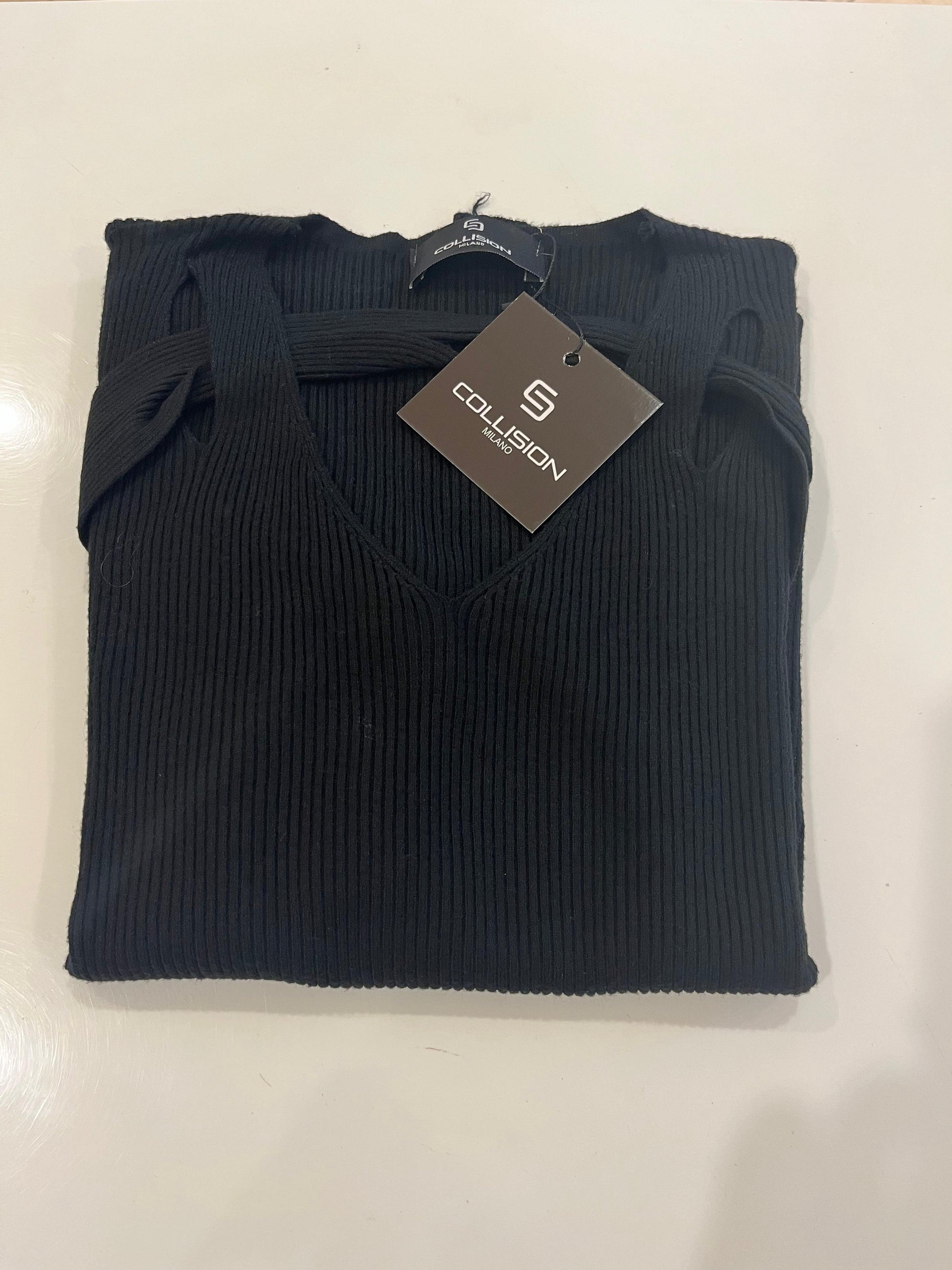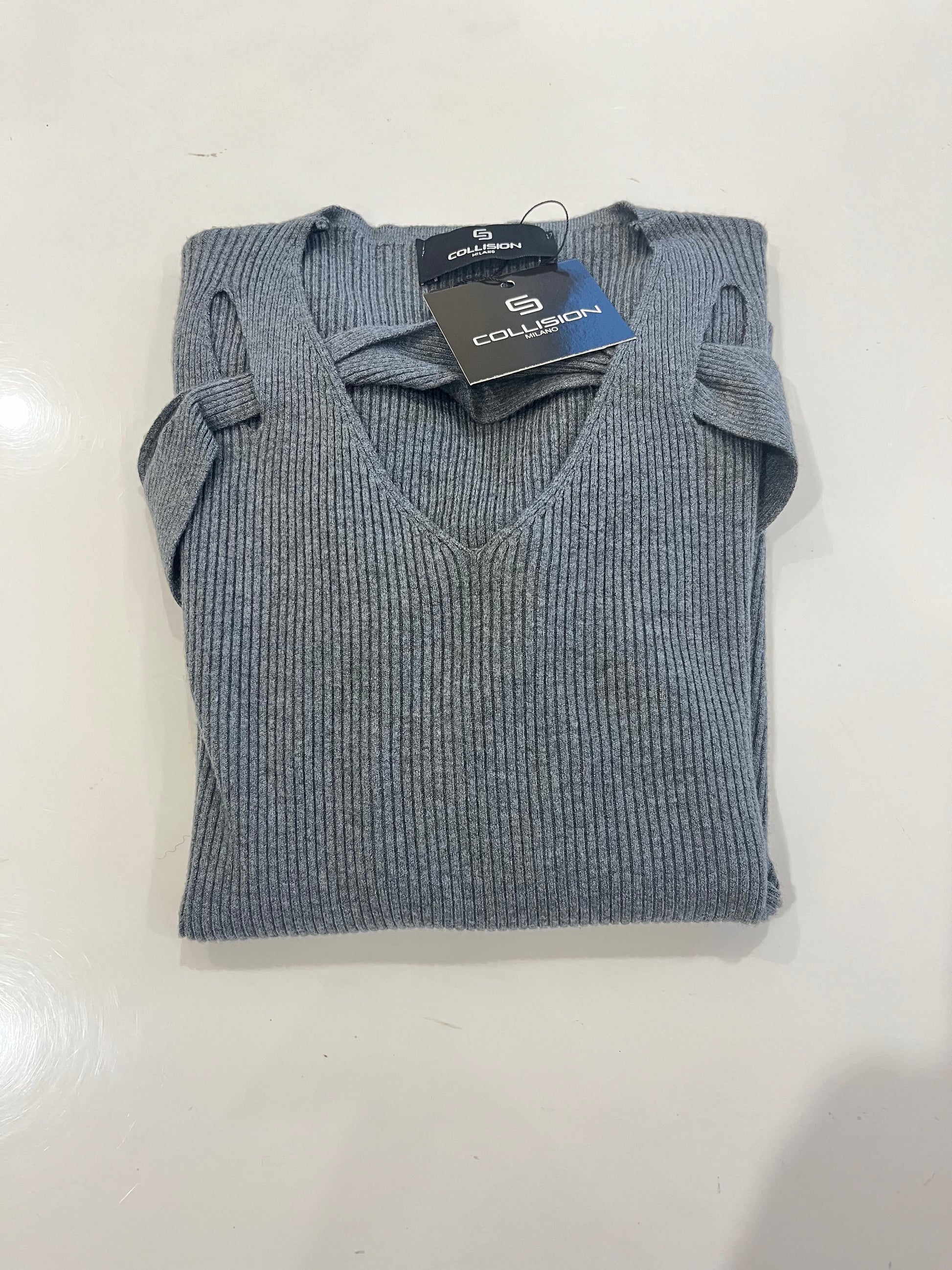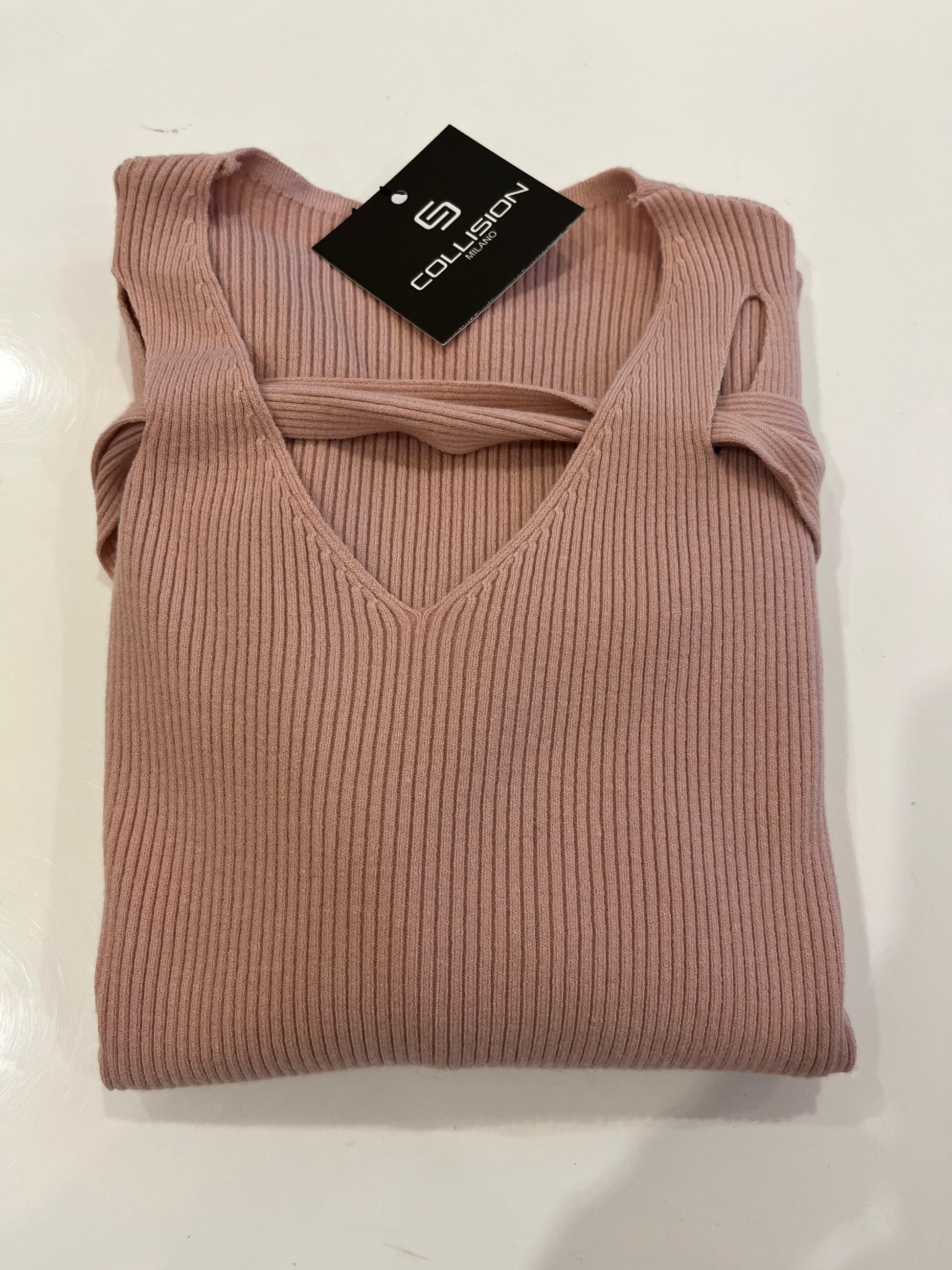 Maglioncino con gioco di incroci sulle spalle scollato a v.
