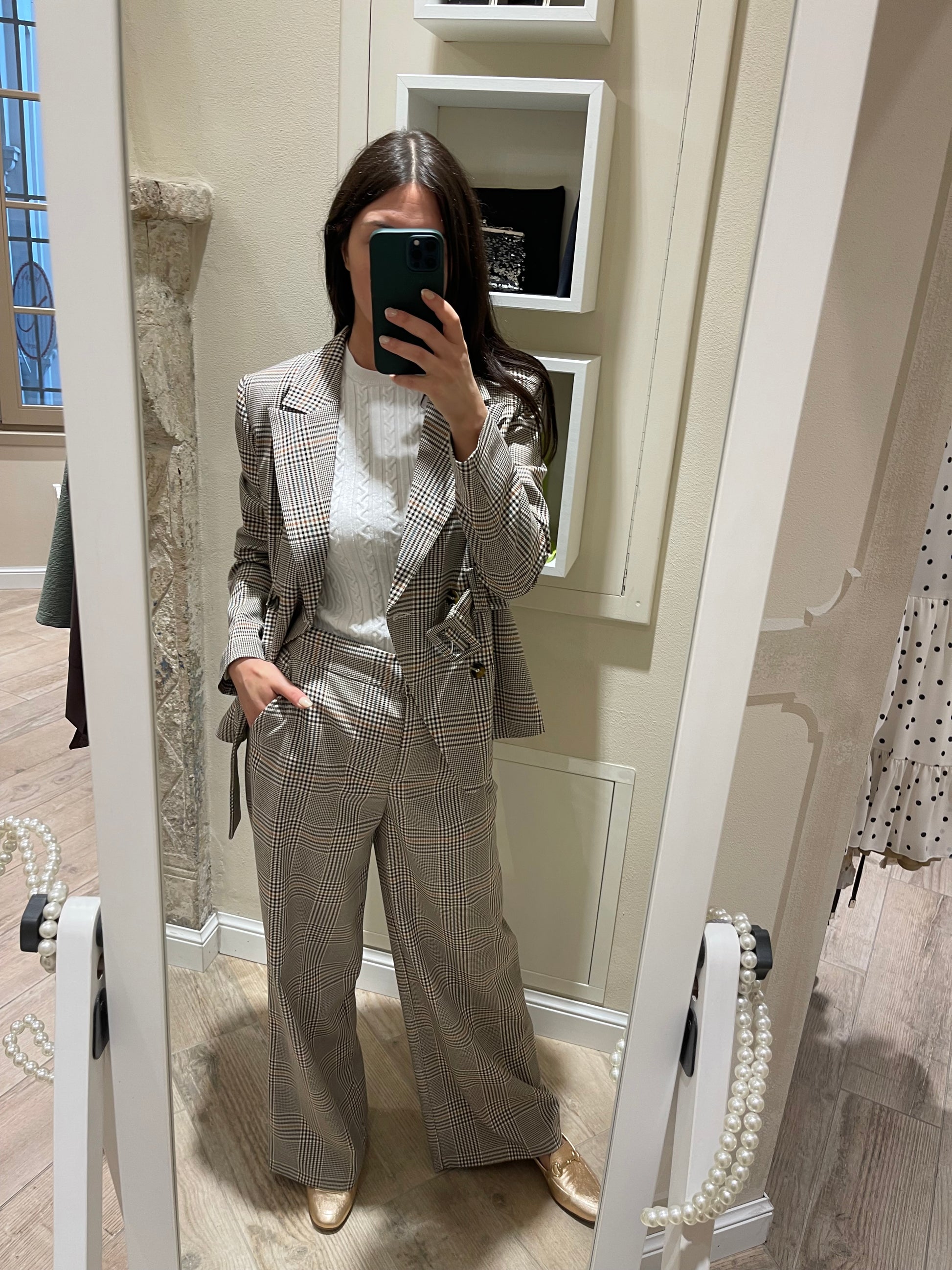 Pantalone palazzo principe di Galles con tasche laterali.