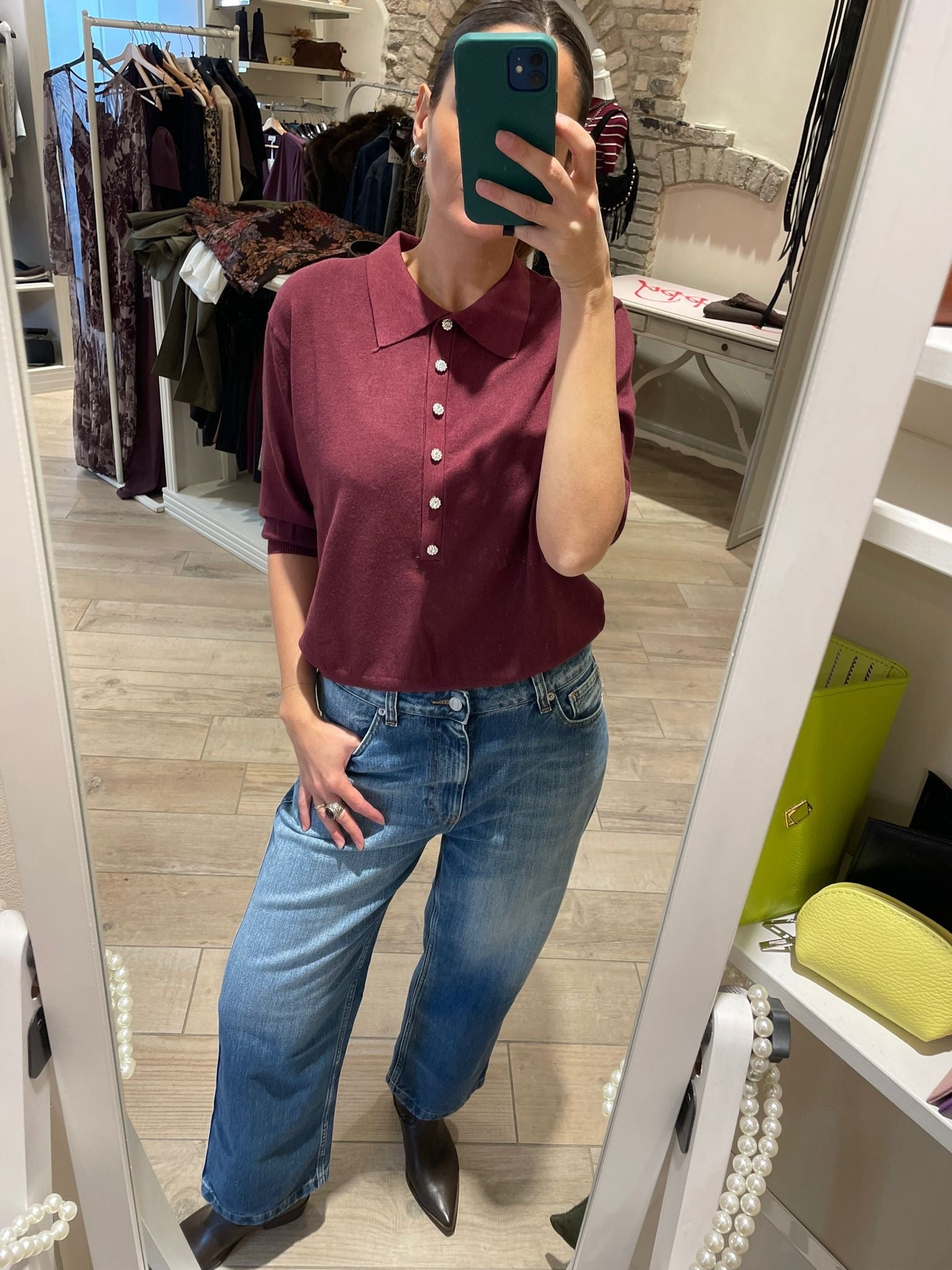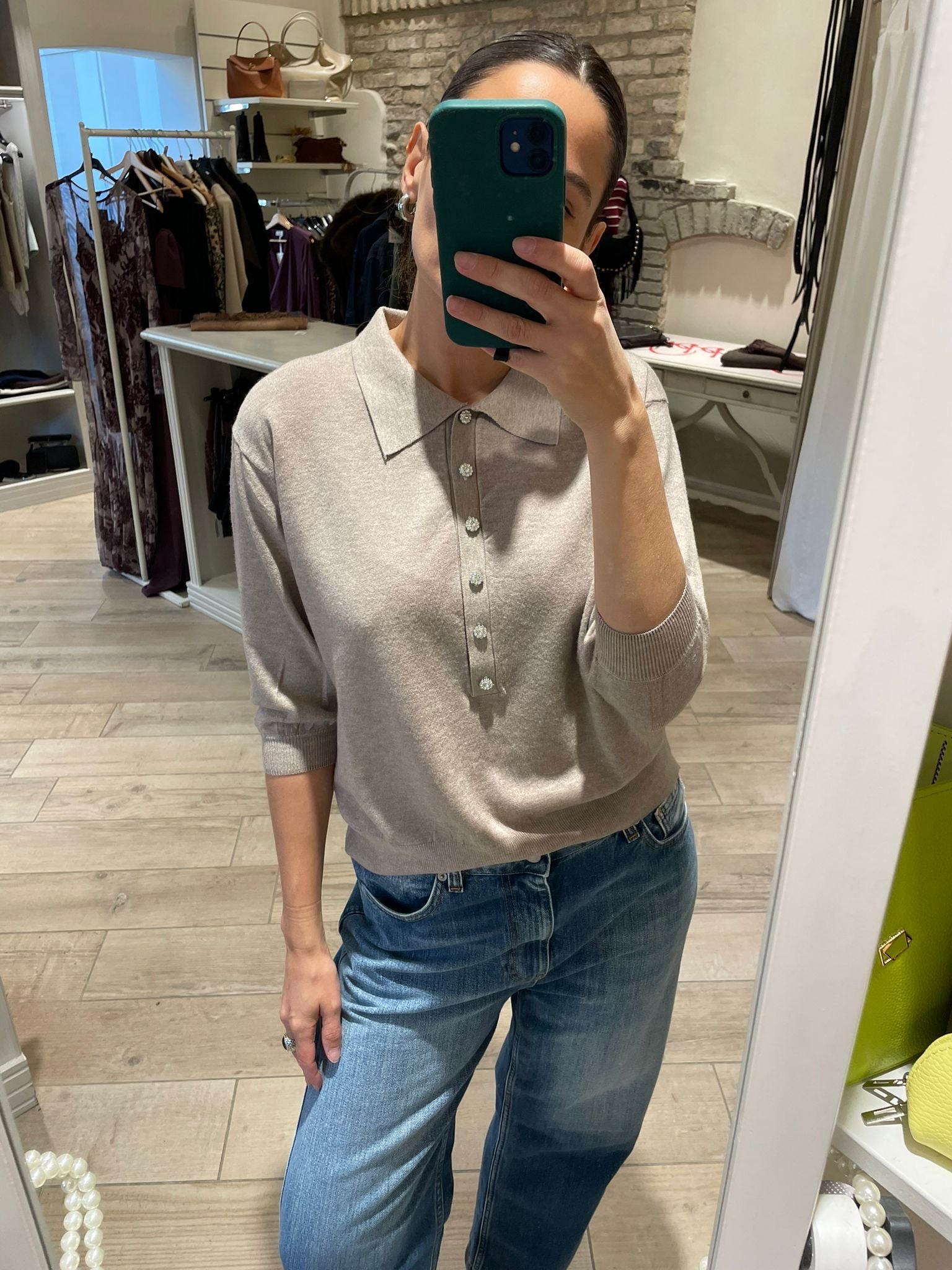 Maglioncino modello polo con manica a 3/4 con bottoncini gioiello.